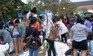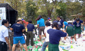 วันที่ 19 ตุลาคม 2554 คณะ บ้านพักฉุกเฉินอาสาช่วยเหลือผู้ฉุกเฉินกว่า ซึ่งประกอบไปด้วย น้องๆผู้หญิงและเด็กรวมทั้งนักสังคมสงเคาะห์จำนวน 10 ท่าน ได้ไปรวมตัวกันที่ ศปภ.ดอนเมืองเพื่อรอขึ้นรถต่อไปคลองหก เพราะโปรแกรมของเราคือการไปเป็นพนักงานฝ่ายผลิตกระสอบทรายที่คลองหก เราจึงเก็บภาพกิจกรรมมาฝาก เพื่อบอกต่อว่าที่นี่ยังต้องการอาสาสมัครอีกมาก เพื่อผลัดเปลี่ยนกันทำ เนื่องจากอากาศร้อนมาก เหล่าอาสาจึงเพลียแดด ต้องพักกันเป็นระยะค่ะไม่งั้นจะเป็นลม