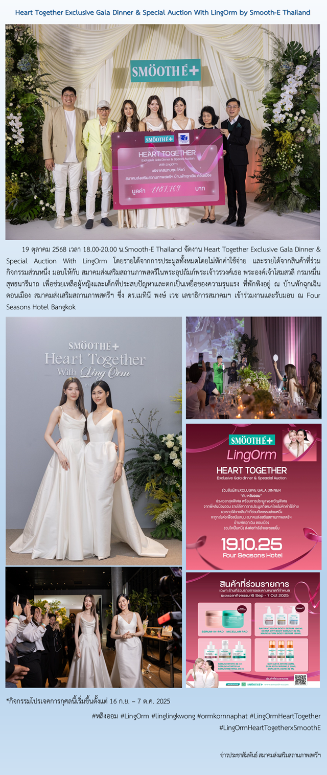 19 ต.ค. 68 Heart Together Exclusive Gala Dinner & Special Auction With LingOrm by Smooth-E Thailand
